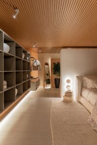 E isso se percebe em cada detalhe do ambiente: nas texturas suaves, na paleta de cores que acalma, na escolha dos objetos que contam histórias. A suíte é, ao mesmo tempo, um espaço íntimo e uma homenagem silenciosa a tantas mulheres que ensinam, cuidam, criam e inspiram.